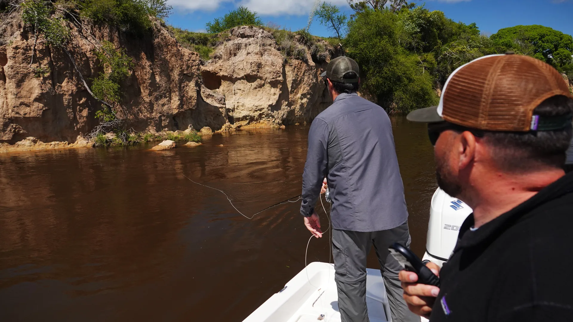 Mornings begin with soft light over the wetlands and the sound of birds moving through the reeds. After a hearty breakfast, you step into the boat with your guide—rods rigged, cooler packed, plans shaped around the day’s conditions. Some stretches call for precise casts to structure and banks, others for swinging streamers through currents or drifting bait or lures along drop-offs where dorado hunt.